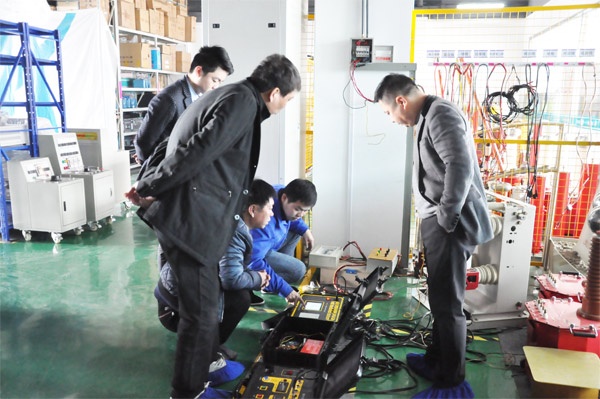 東北客戶此行主要考察SF6氣體回收裝置、無局部放電試驗裝置、高壓開關動特性測試儀等設備。 在考察過程中,工程師還為客戶進行了設備操作的現場演示,在演示過程中,客戶時不時會提出他們的疑問,我們的工程師也很耐心的為其解答。通過一天的考察后,東北客戶對國電西高的設備十分滿意,表示有合作意向。