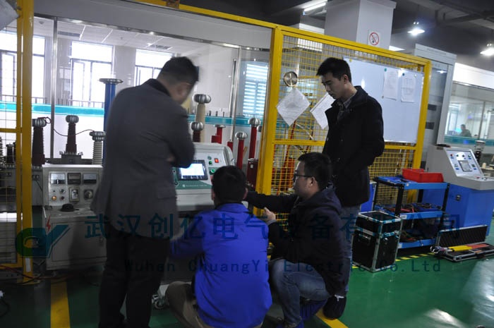 參觀完我公司后,客戶一行對我公司的行為規(guī)范和規(guī)模有了一致肯定。提出想檢測由我公司生產(chǎn)的智能耐壓試驗(yàn)裝置。過后技術(shù)工程師就為客戶現(xiàn)場檢測了我公司自產(chǎn)的CYYD系列智能耐壓試驗(yàn)裝置。