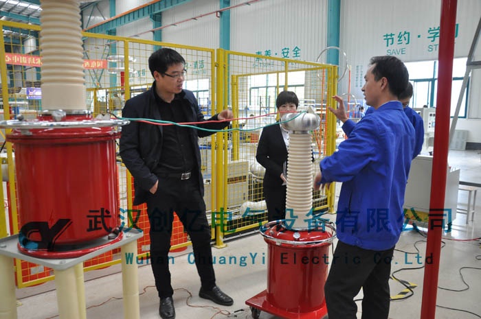 6號,我司迎來了常州博瑞的客戶前來我司驗貨。本次來訪主要是為了驗收該客戶在我司購買的一套串級工頻耐壓試驗成套裝置以及沖擊電壓裝置。