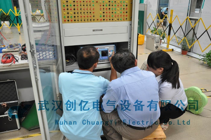 隨后客戶依次參觀了我司的500kV的GIT設(shè)備以及SF6氣體回收裝置。最后由于客戶之前在我司購買了CYSL-3000A大電流溫升設(shè)備,因此客戶此次前來詳細學(xué)習(xí)了大電流溫升設(shè)備的詳細操作方法,并就一些疑問與我司技術(shù)人員進行了認真的溝通。