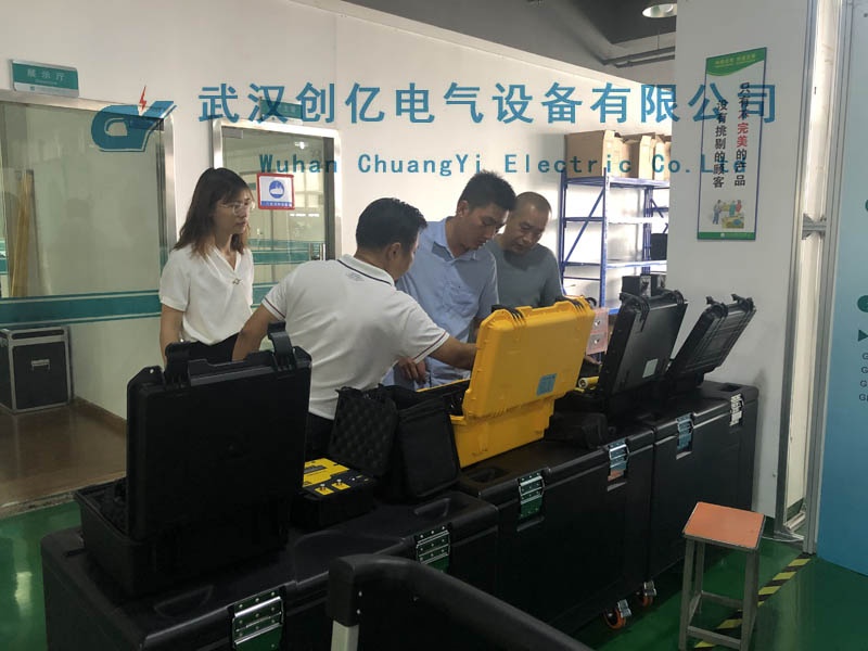 隨后一同前往生產車間詳細了解我們的生產流程、裝配過程、質檢程序等內容。在生產車間,我們的技術員對其客戶感興趣的CYTF系列串諧試驗裝置做了實地演示。