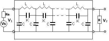 • 變壓器繞組的幅頻響應特性采用圖1所示的頻率掃描方式獲得。連續改變外施正弦波激勵源VS的頻率f(角頻率ω=2πf),測量在不同頻率下的響應端電壓V2和激勵端電壓V1的信號幅值之比,獲得指定激勵端和響應端情況下繞組的幅頻響應曲線。圖中:L、K及C分別代表繞組單位長度的分布電感、分布電容及對地分布電容,V1、V2分別為等效網絡的激勵端電壓和響應端電壓,VS為正弦波激勵信號源電壓,RS為信號源輸出阻抗,R為匹配電阻。