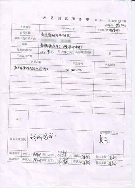 2014-05-19 貴州省錦屏縣三江鎮(zhèn)掛治水電廠進(jìn)行調(diào)試服務(wù),調(diào)試產(chǎn)品:CYDZ-220-100A直流電源綜合特性測(cè)試儀