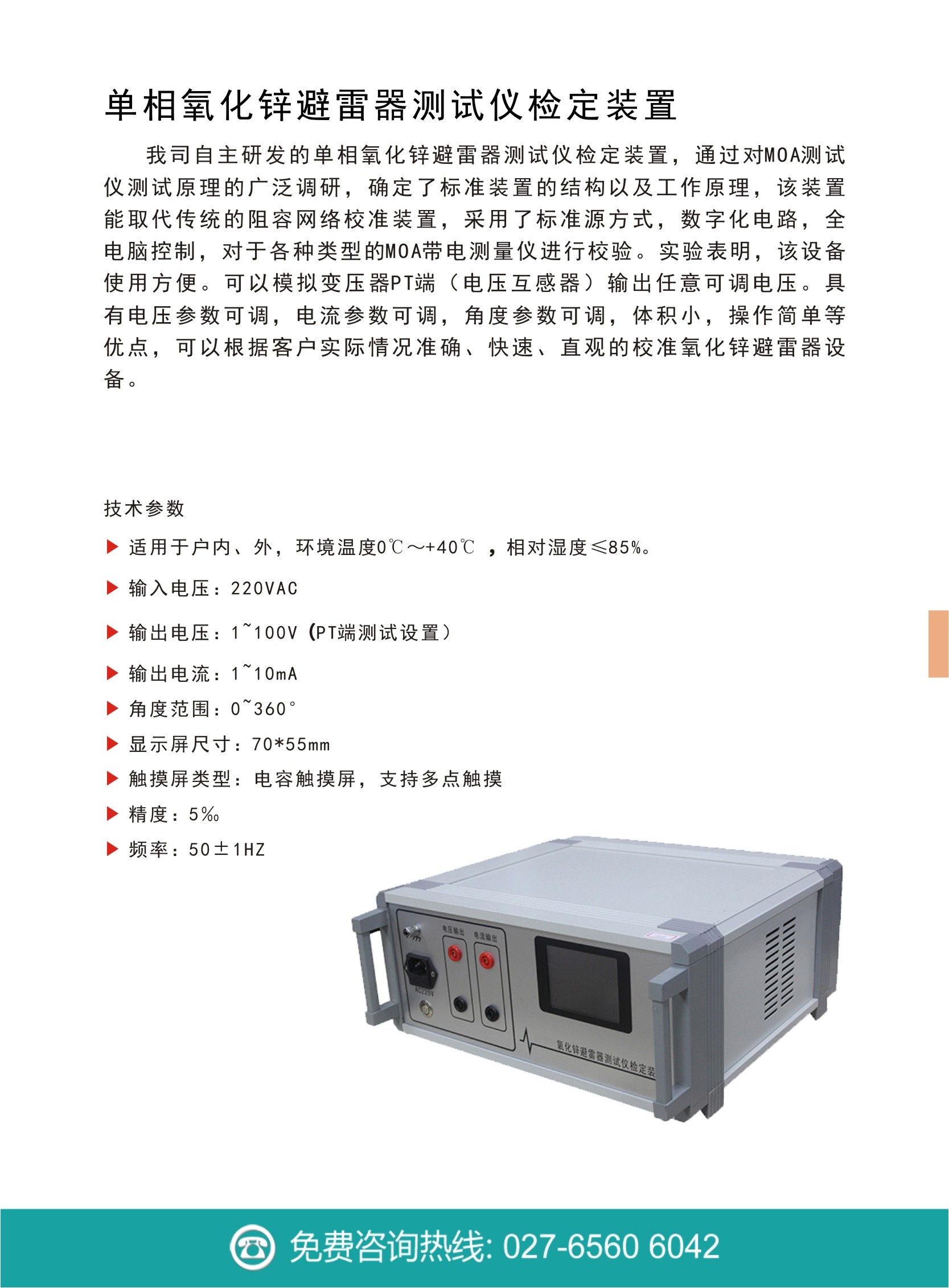 創(chuàng)億電氣自主研發(fā)的CY-301單相氧化鋅避雷器測試儀檢定裝置,通過對MOA測試儀測試原理的廣泛調(diào)研,確定了標(biāo)準(zhǔn)裝置的結(jié)構(gòu)以及工作原理,該裝置能取代傳統(tǒng)的阻容網(wǎng)絡(luò)校準(zhǔn)裝置,采用了標(biāo)準(zhǔn)源方式,數(shù)字化電路,全電腦控制,對于各種類型的MOA帶電測量儀進(jìn)行校驗。實驗表明,該設(shè)備使用方便。可以模擬變壓器PT端(電壓互感器)輸出任意可調(diào)電壓。具有電壓參數(shù)可調(diào),電流參數(shù)可調(diào),角度參數(shù)可調(diào),體積小,操作簡單等優(yōu)點,可以根據(jù)客戶實際情況準(zhǔn)確、快速、直觀的校準(zhǔn)氧化鋅避雷器設(shè)備。